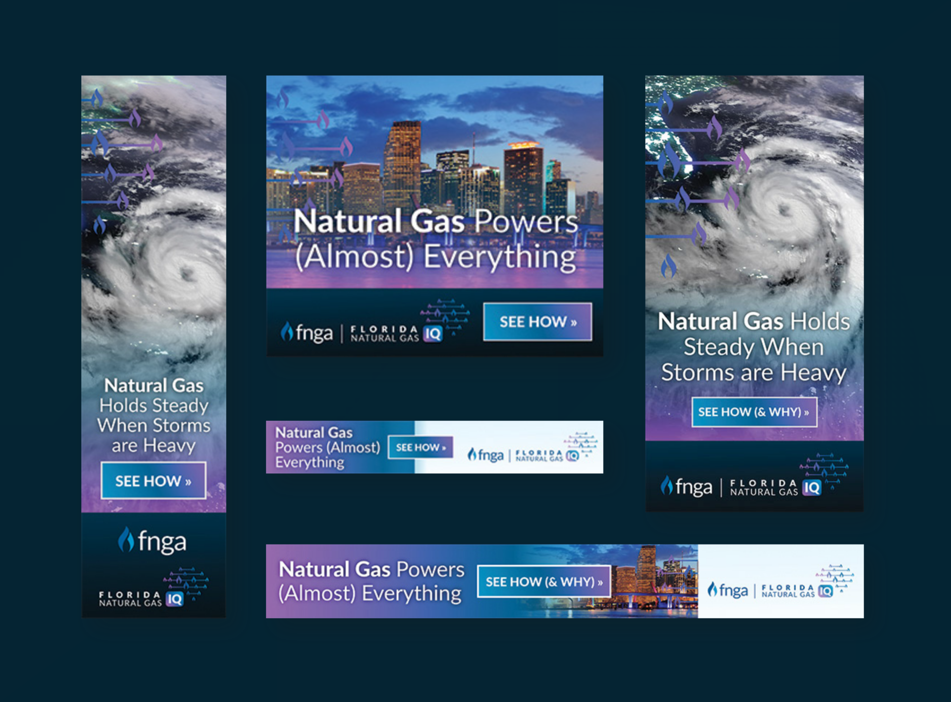 The Florida Natural Gas Association (FNGA) IQ Campaign was a statewide educational initiative designed to raise awareness of the essential role natural gas plays in the everyday lives of Florida residents. The campaign focused on informing audiences through factual, data-driven storytelling that highlighted how natural gas supports homes, businesses, and innovation across the state.